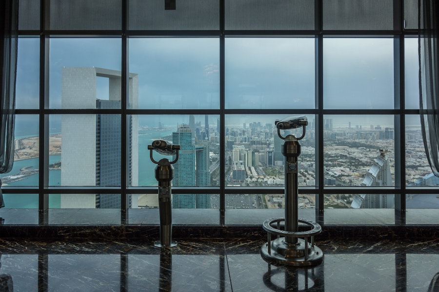 The towers are connected by a shopping plinth, which publicly accessible. There are several interesting restaurants which might be worth a visit. The Observation Deck 300 is located in the hotel tower, directly from the lobby or through an outdoor entrance. Admission is free for hotel guests, and around 75UAD for others. The Big Bus Tour has a stop there.