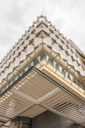These are features that, for me, makes it a project that shows what not to do when designing a building. However, it also makes it into a must-see project, if not for all of its merits, at least for the fact that such a building stands. I regret not stopping there to check it out. It stands impressively in the skyline of the city, with its crazy 18 degrees lean. Close-up, however, it looks a bit messy. The sun canopy on the east side is relatively ugly, a departure from the clean lines in the original design, and the straightening of the curve towards the base shows the limitations of such audacious design when it becomes a reality. Also, the facade looks a bit heavy with too many lines and elements screaming for attention.